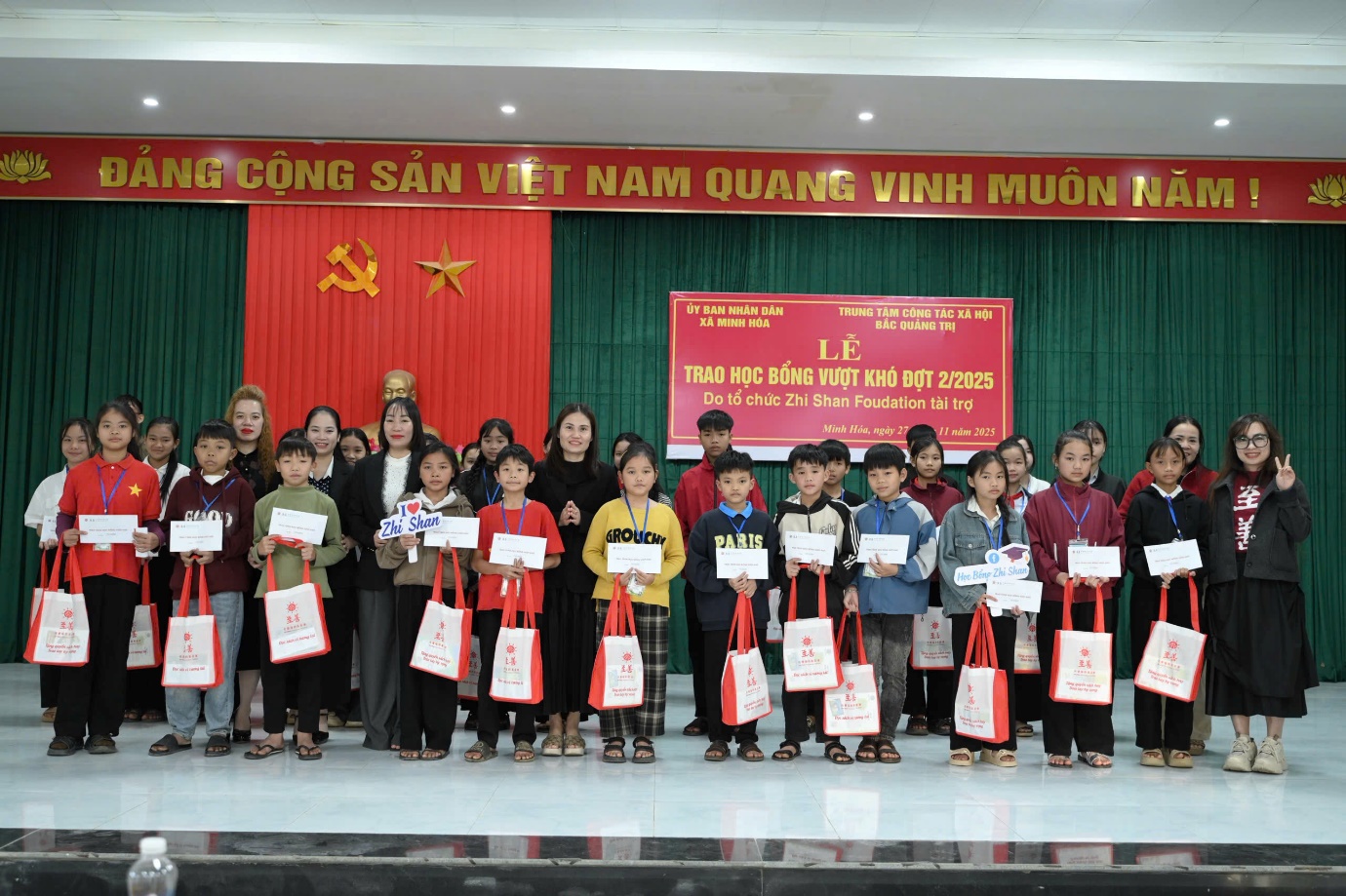 Từ ngày 25 đến ngày 28 tháng 11 năm 2025, Tổ chức Zhi Shan Foundation phối hợp với Trung tâm Công tác xã hội Bắc Quảng Trị và UBND 34 xã khu vực Bắc Quảng Trị (Quảng Bình cũ) tổ chức Lễ trao tặng học bổng đợt 2 thường niên. Đợt này, 684 suất đã được trao tận tay các em học sinh có hoàn cảnh khó khăn hiếu học, với tổng kinh phí tài trợ gần 940 triệu đồng. Khoản tài trợ ý nghĩa này không chỉ là sự hỗ trợ vật chất mà còn là nguồn động viên to lớn, thắp sáng niềm hy vọng cho các em trên con đường chinh phục tri thức. Năm học 2024 - 2025 đã ghi dấu những nỗ lực và thành tích xuất sắc của các em học sinh. Để kịp thời ghi nhận những cố gắng không ngừng nghỉ ấy, Zhi Shan còn đặc biệt trao thưởng cho những em đạt thành tích học tập khá, giỏi và đạt giải tại các cuộc thi cấp trường, cấp tỉnh. Những phần quà này chính là sự khích lệ mạnh mẽ, thôi thúc các em vươn tới những đỉnh cao mới.Đáng chú ý, bên cạnh học bổng và phần thưởng, mỗi em còn nhận được một phần quà đặc biệt để chào đón năm học mới đó là mỗi em được tặng một túi sách với nhiều đầu sách phong phú và bổ ích. Zhi Shan tin rằng, việc tặng sách không chỉ là trao một món quà mà còn là gieo mầm tri thức cho thế hệ tương lai của đất nước, mở ra những chân trời mới, rèn luyện tư duy và nuôi dưỡng tâm hồn các em.